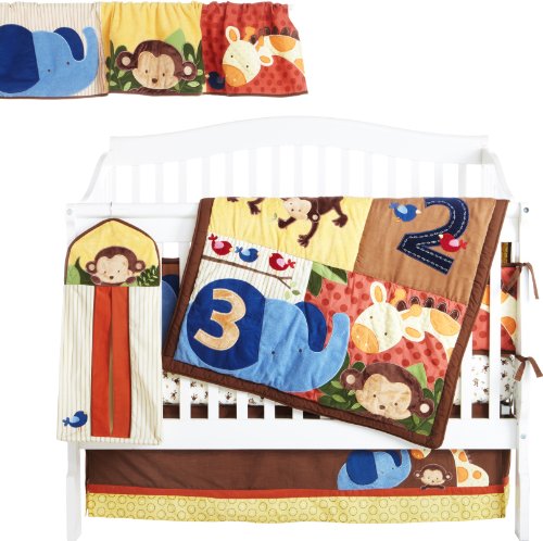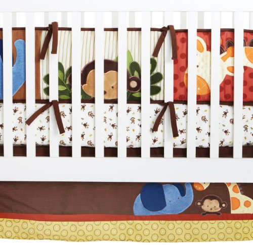 - Four piece set includes comforter, bumper, sheet and dust ruffle